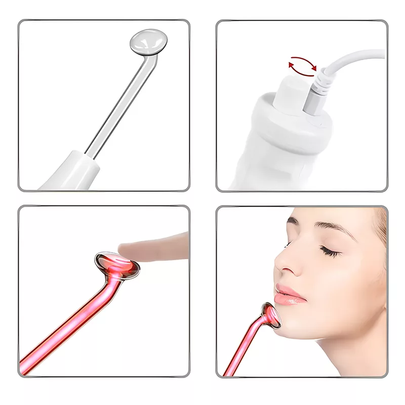 Dieser Hochfrequenzstab fördert die Durchblutung und verleiht Ihrem Gesicht einen gesunden Glanz. Es reduziert sichtbar feine Linien und strafft schlaffe Bereiche. Es ist einfach zu Hause zu verwenden und liefert Spa-ähnliche Ergebnisse.