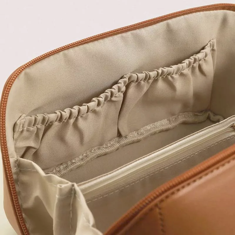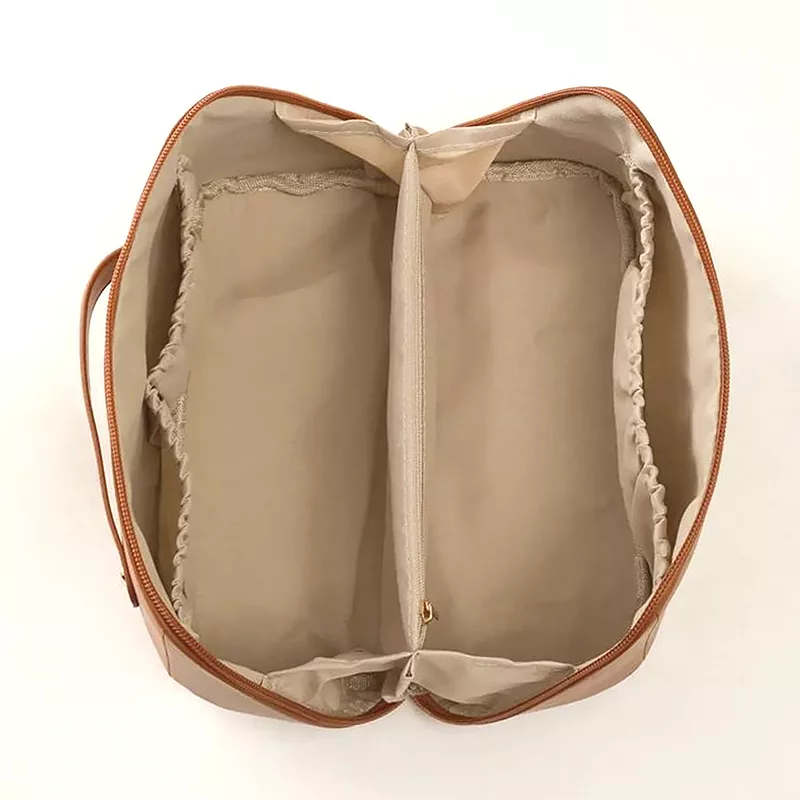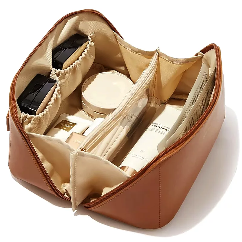 Unsere Tasche ermöglicht es Ihnen, Artikel einfach zu sortieren, sodass Sie nie Zeit mit Suchen verschwenden. Es gibt genug Platz für Pinsel, Flaschen und Make-up. Es reduziert das Durcheinander, was jede Routine schneller und reibungsloser macht.